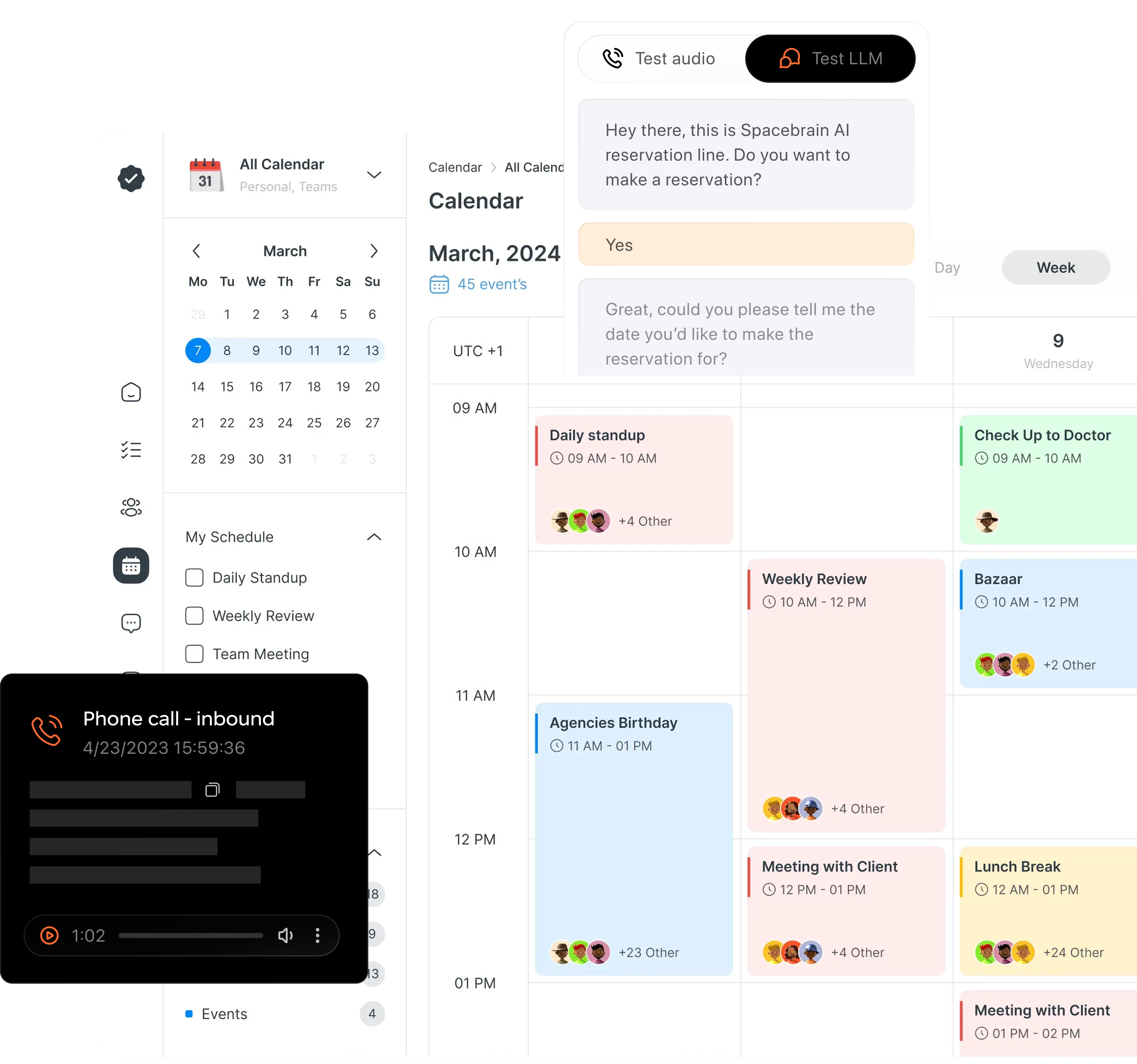 Creating an AI voice agent with Spacebrain is simple and requires no coding. Sign up for an account, use our no-code builder to customize your agent's voice, behavior, and workflow, then deploy in minutes. Connect your phone number, configure your prompts, and your AI agent is ready to handle calls. You can test and refine your agent before going live.